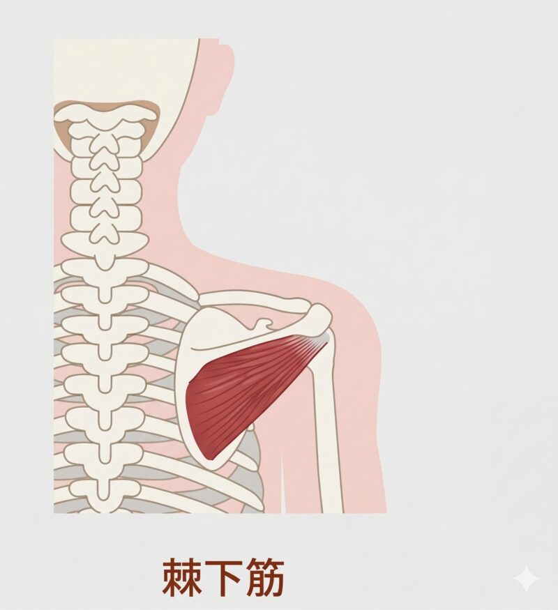 2.棘下筋(きょくかきん):投げた後に腕が抜けないよう「ブレーキ」をかける。