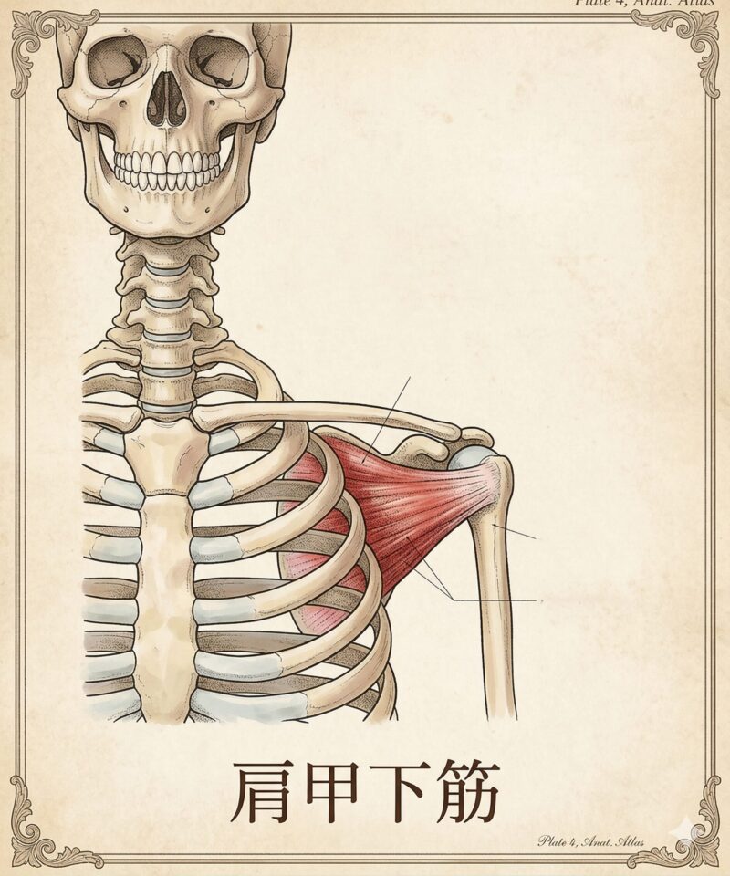 4.肩甲下筋(けんこうかきん):肩の前側を支える大きな壁。